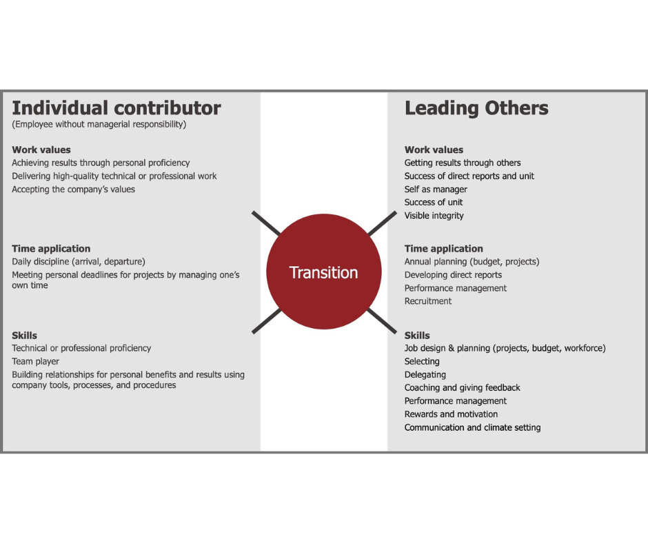 The shift from individual contributor to people manager is one of the most critical — and most underestimated — transitions in a person’s career. What made someone successful as an expert is no longer enough. Now, they must achieve results through others, manage performance, give feedback, and build team trust — often with little to no preparation. Without support, many new managers default to doing their old job or micromanaging. Supporting this transition isn’t just a nice-to-have — it’s essential for building a healthy leadership culture, boosting engagement, and avoiding costly management mistakes early on.
